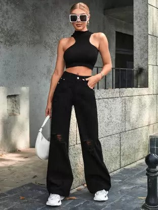 Knee cut jeans for women