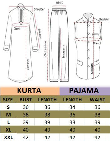 Its contain 3 pcs 1 pcs of kurta cotton and 1 pcs of pyjama and 1 pcs of sartin nerhu jacket. Hand wasy olly plz sartin fabir nerhu jaket cotton kurta pyjama